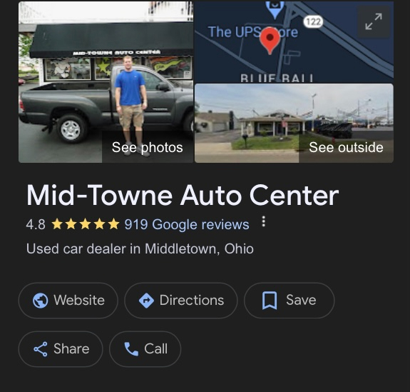 All of our vehicles are fully inspected and serviced by a CERTIFIED technician and all have a clean CARFAX! Our goal is to be the lowest price within a 200 mile radius according to autotrader.com. Ask about our current APR SPECIALS. Get a great deal on an extended service contract. We are interested in taking in or purchasing all trade-ins! Find out why MID-TOWNE AUTO CENTER was voted top 5 used car dealer in the state of Ohio! Call, e-mail, or stop in today! CALL FOR MORE DETAILS. USED CARS MIDDLETOWN, DAYTON, CINCINNATI